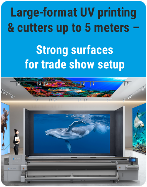 Printing and cutting from one source – faster setup, less rework and perfect fit at the stand.