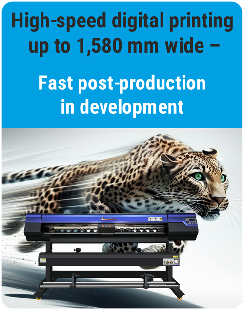 For smaller to medium-sized media and extremely short lead times, we use speed digital printing up to 1,580 mm width. Perfect for last-minute changes and missing elements during setup.